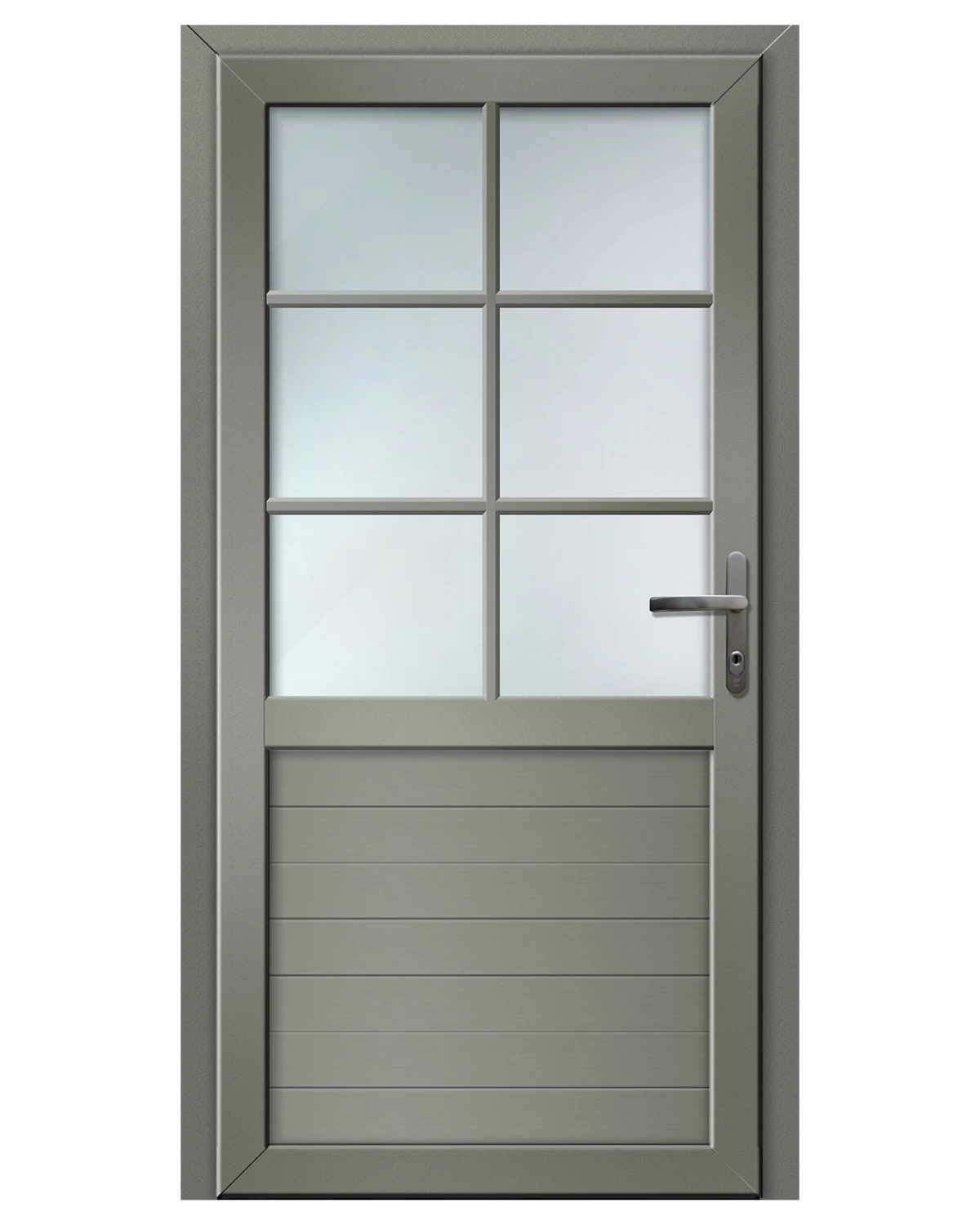 U kunt uw achterdeur zelf op maat samenstellen. U kunt bijvoorbeeld kiezen voor een dorpel op iedere hoogte met in het onderste deel glas, een glad paneel of een paneel met een stapeldorpel-look. Ook roeden zijn mogelijk. Alle kleuren staan hier… en de soorten glas hier…