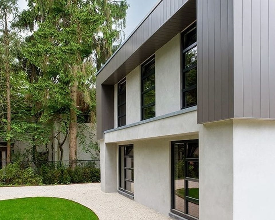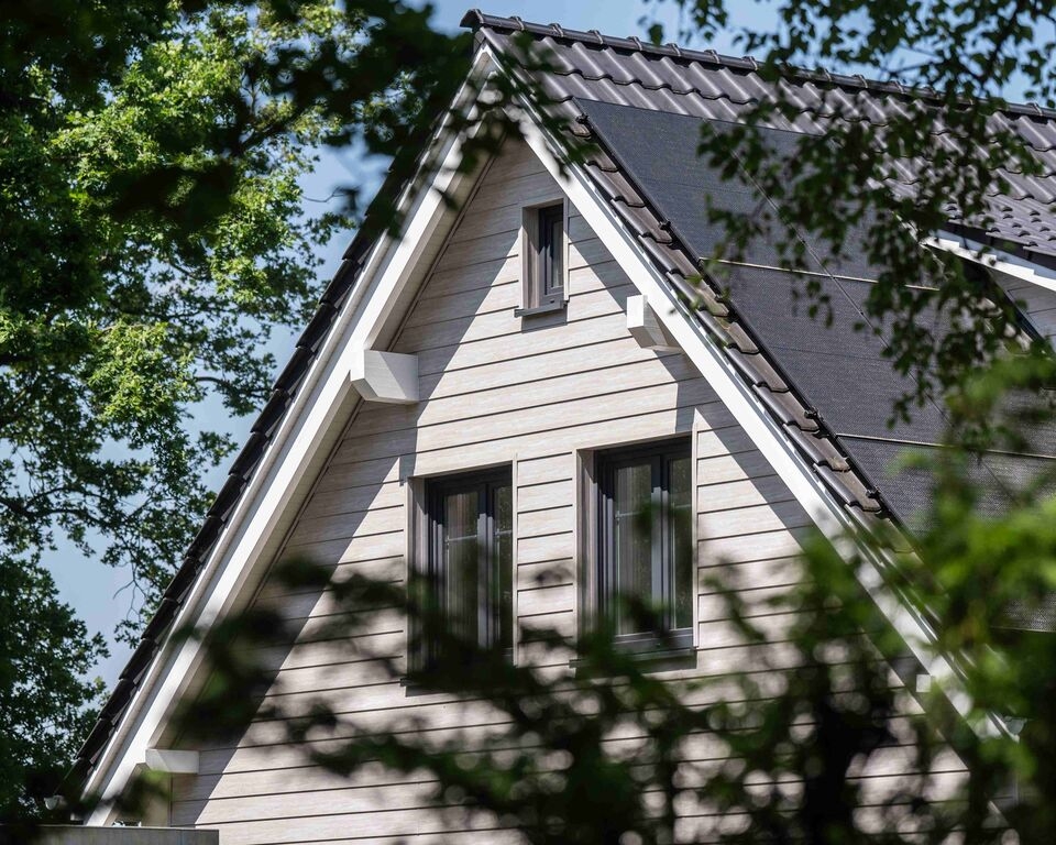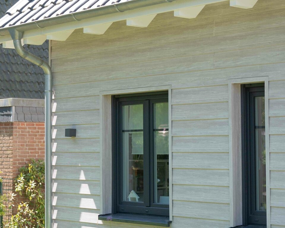 Deze gevelpanelen van 143 mm breed zorgen voor een elegant en verfijnd lijnenspel. Ze kunnen zowel horizontaal als verticaal worden gemonteerd. Met meer dan 35 kleuren is er altijd een variant die perfect bij uw woning past.