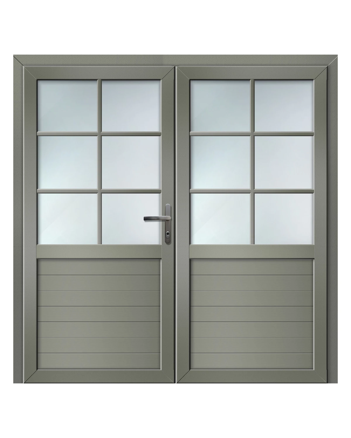 De deuren kunt u geheel naar wens samenstellen. U kunt bijvoorbeeld kiezen voor meerdere stijlen en dorpels. Of wat denkt u van 1 dorpel in het midden met in het onderste deel glas, een glad paneel of een paneel met een stapeldorpel-look. Ook roeden zijn mogelijk. Alle kleuren staan hier… en de soorten glas staan hier…